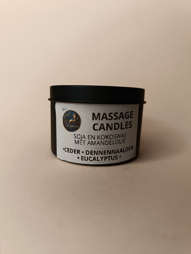 Handmade massage candle with soy & coconut wax, enriched with almond oil. When lit, releases a soothing blend of cedar, pine needles, and eucalyptus. Melted wax can be applied directly to the skin for a warming, hydrating massage or left to diffuse as aromatherapy.
